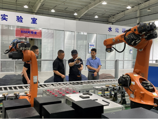 张博董事长一行首先参观了k8凯发实验室,实验室吕晓军主任进行了讲解,介绍了机器人产线、智能制造系统及液压试验台等设备,并对实验能力、对外服务能力等做了介绍。