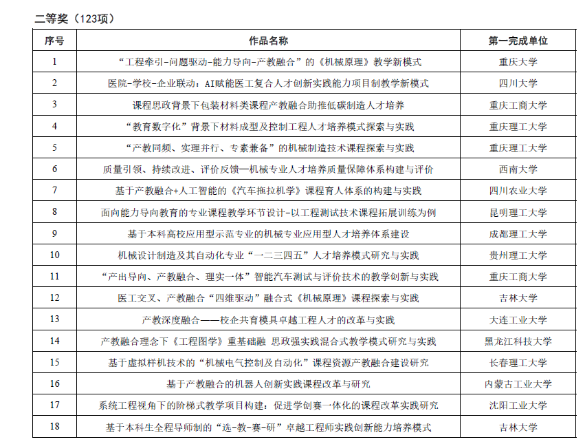 本届比赛全国共有311项作品参赛,最终获得区域赛奖项的有包含公司以及西安交通大学、西北工业大学、西安工业大学等院校的21件作品,其中本校机械公司参赛作品“融合,递进,协同”应用型高校机器人工程本科人才培养模式探索与实践”获得区域赛二等奖,作品成果报告主要围绕机器人工程专业领域理论课及实践课相关教学内容、平台资源建设与教学模式等创新,聚焦于解决教学真问题、提高教学成效并推广,充分展现了公司教师队伍扎实的专业素养和与行业企业协同育人的成效。