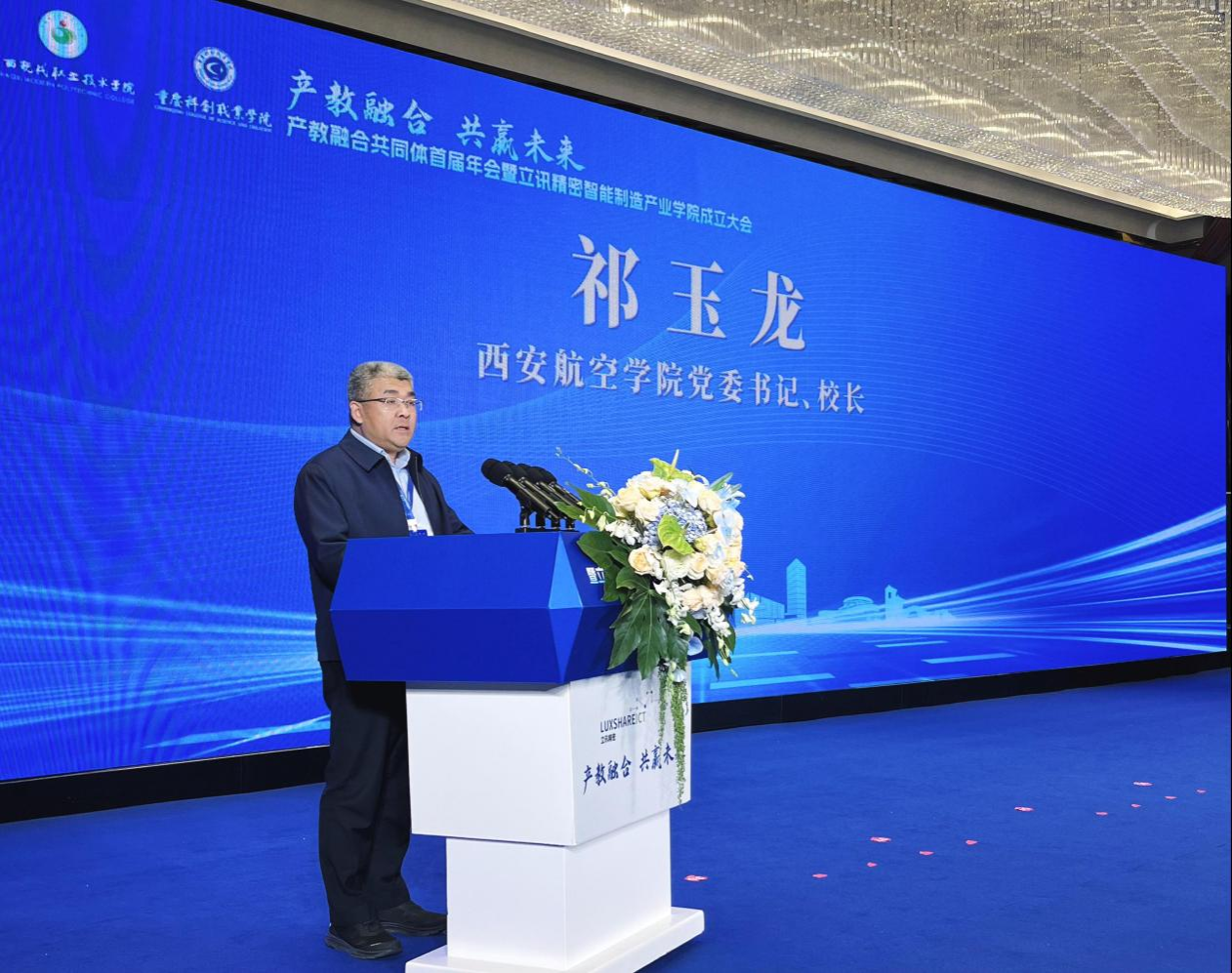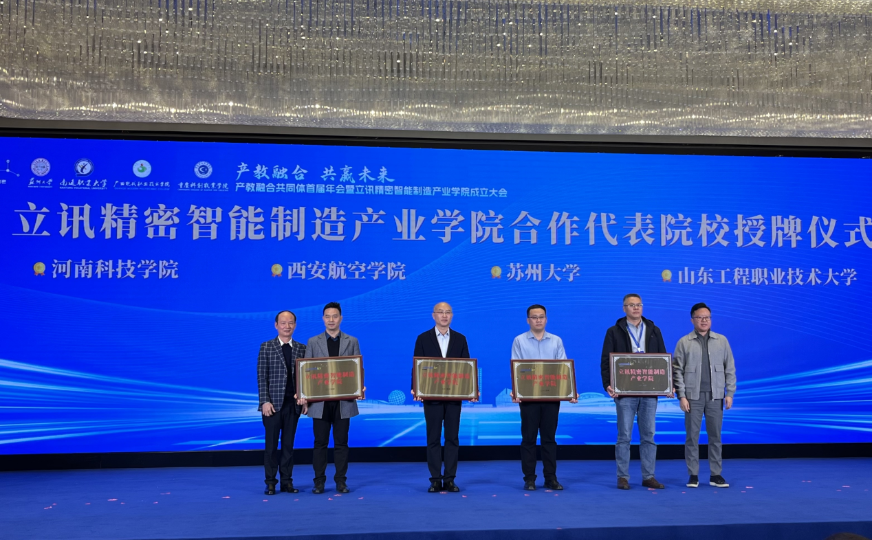 11月28日至29日,主题为“立讯携手,产教融合启新程——共绘未来蓝图,赋能产业创新”产教融合共同体首届年会暨立讯精密智能制造产业公司成立大会在昆山举行,会议由立讯集团、苏州大学等主办,参会单位来自全国各地20多家本科高校和40多家职业院校。公司党委书记、董事长祁玉龙应邀参加大会并致辞。k8凯发经理王永锋、副书记刘欣、综合办主任郭悦涵参加了与立讯集团的签约和授牌仪式。