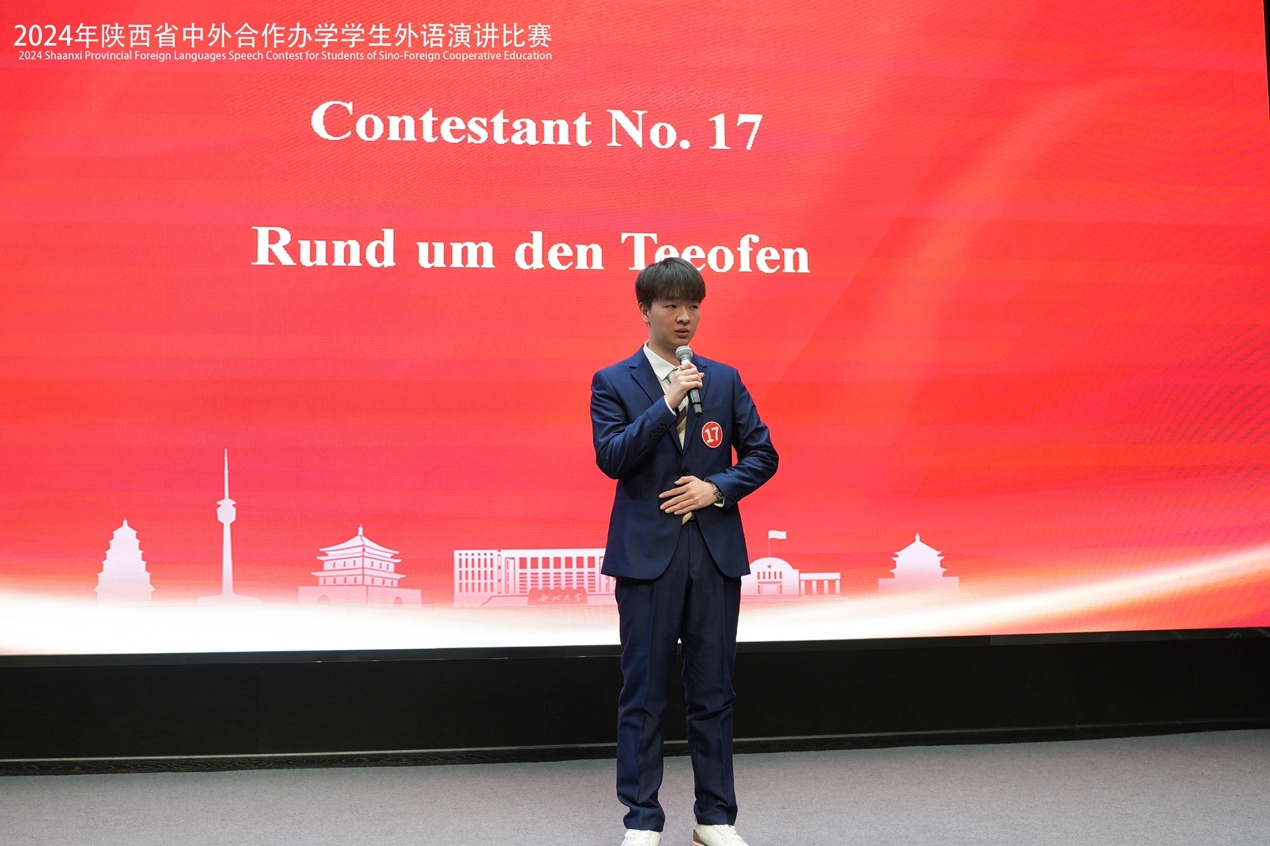 12月10日,2024年陕西省中外合作办学员工外语演讲决赛在西北大学长安校区举行,我省数十家中外合作机构(项目)所在公司派代表参加了本次比赛,公司中德合作办学项目2022级的吕欣卓同学,以唯一的德语选手身份跻身决赛,最终取得第12名,三等奖的好成绩。