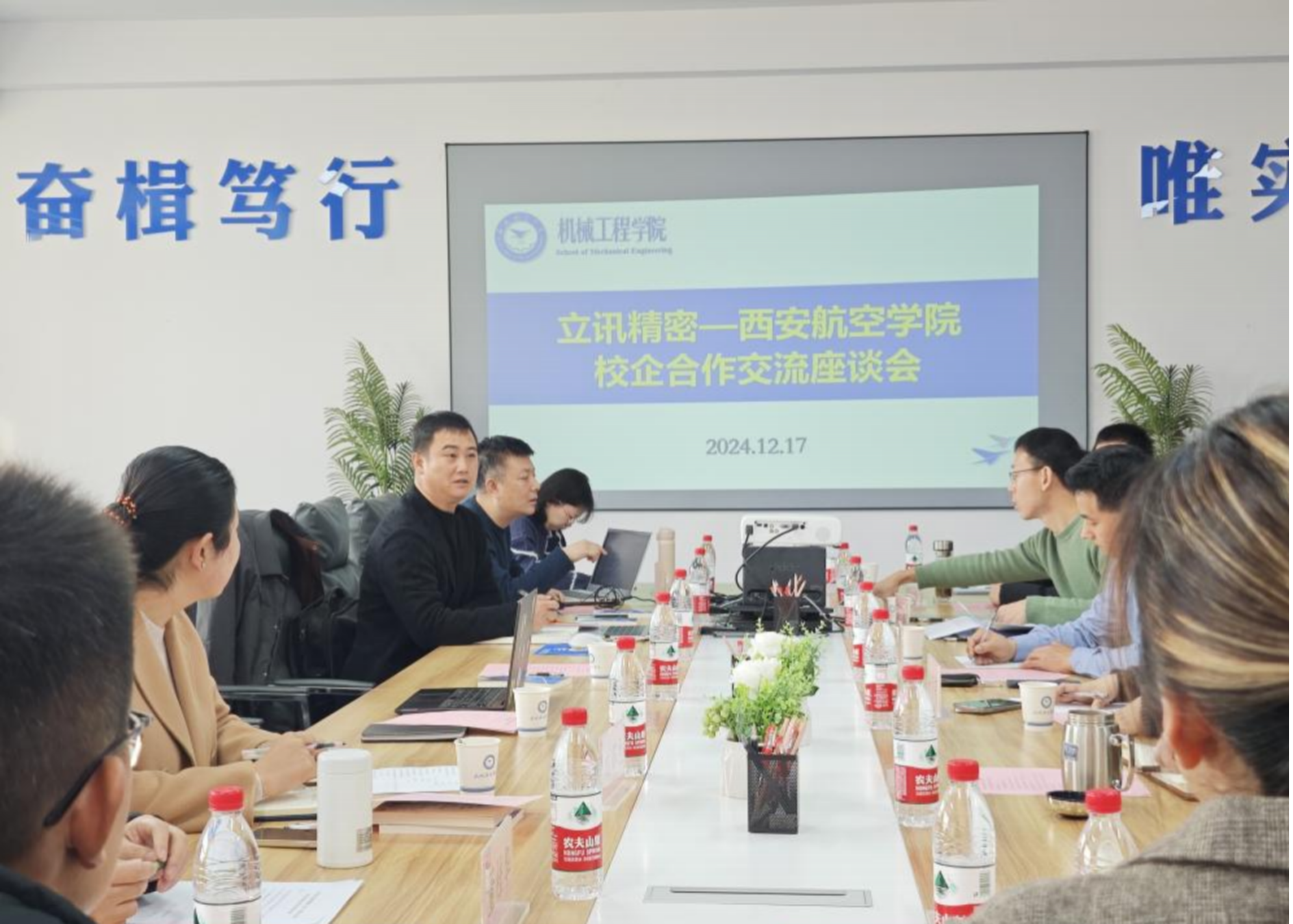 2024年12月17日,立讯精密校企合作部经理汪宝峰一行六人到k8凯发洽谈校企合作并进行实地考察和座谈交流。