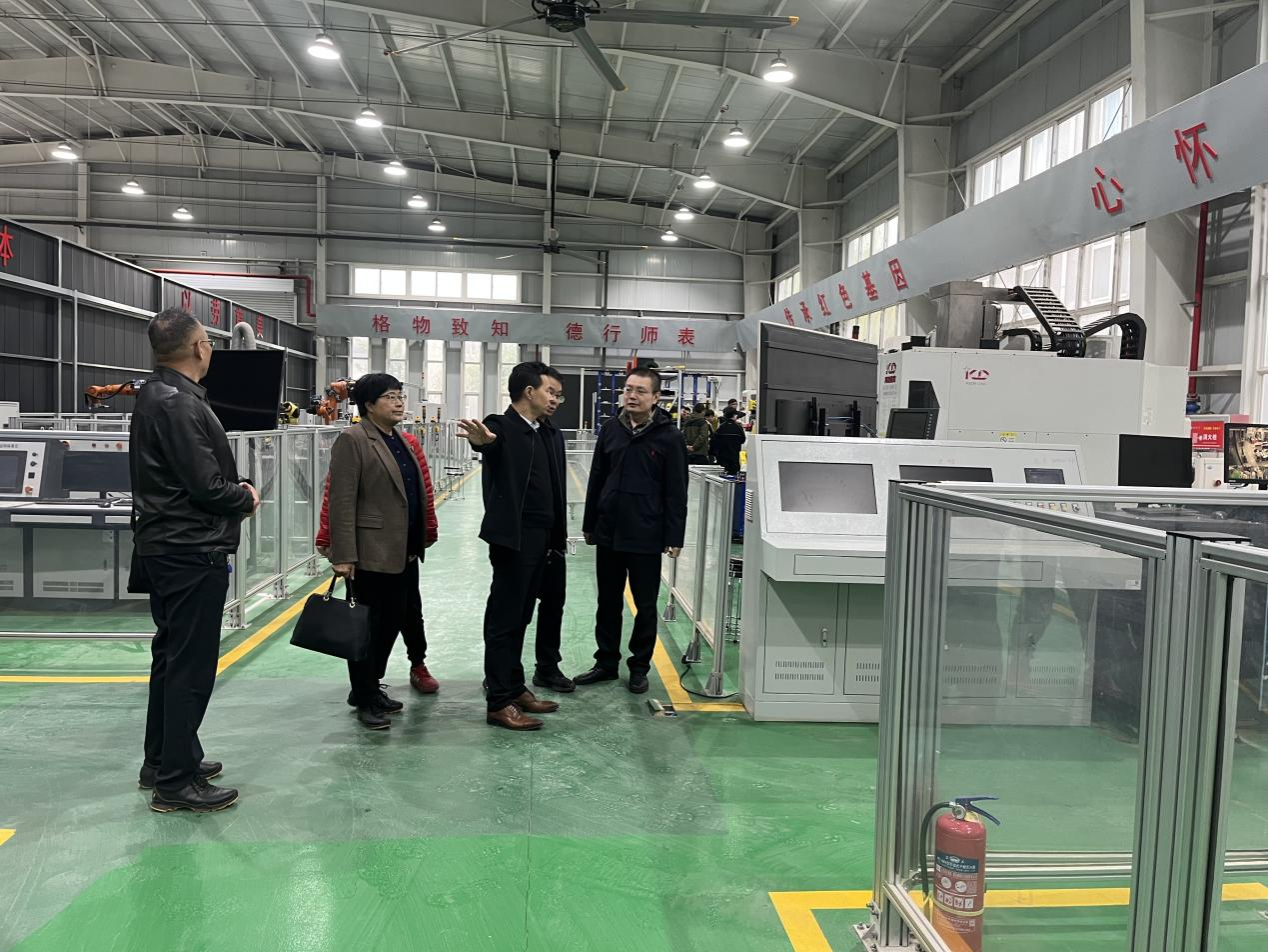 王永锋经理和杨武成副经理首先陪同曹岩经理一行参观了公司智能制造技术实验室,双方对公司智能制造技术产线、机器人应用产线的设备现状和应用情况进行了深入交流。