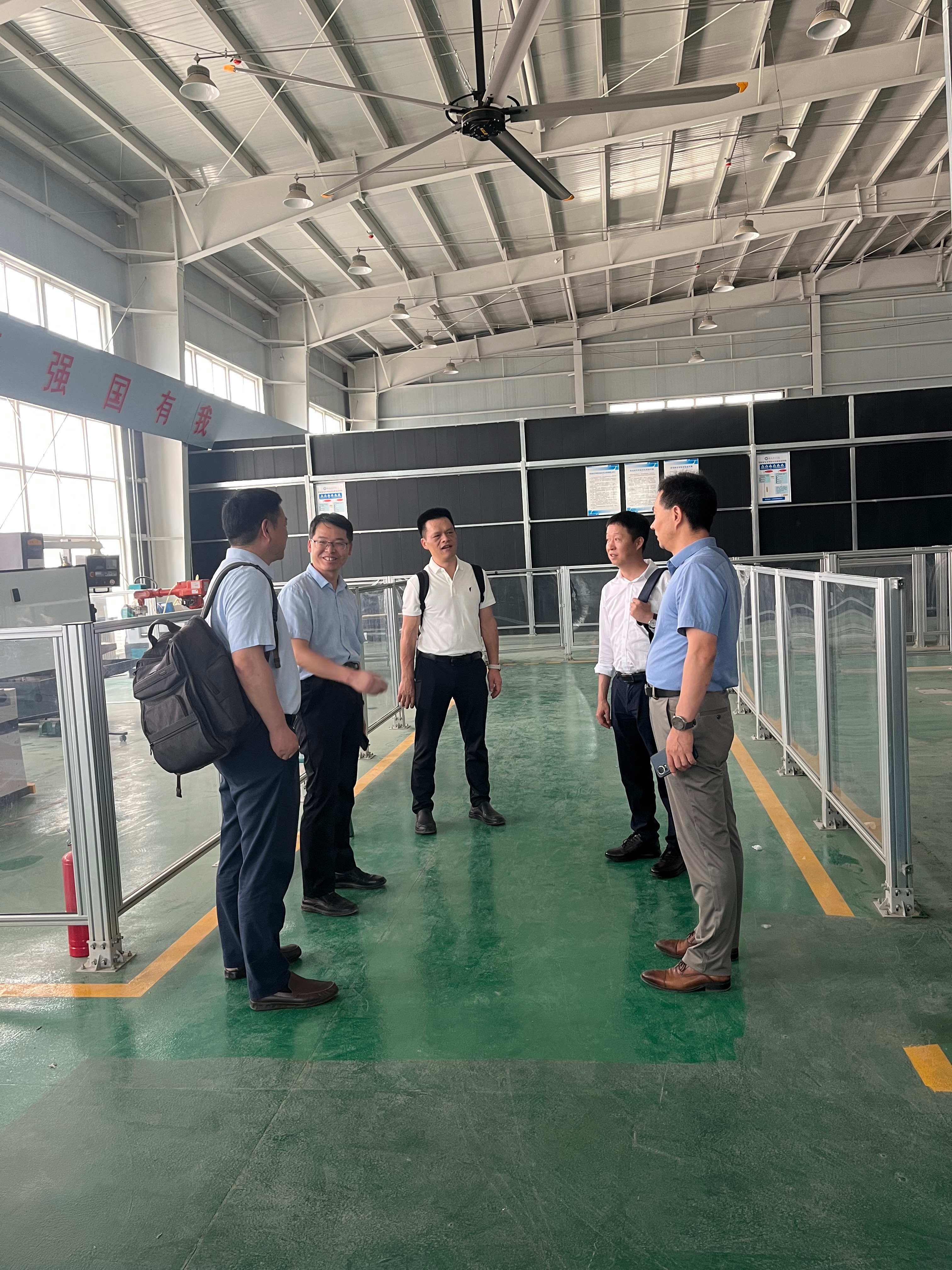 王永锋经理和杨武成副经理首先陪同企业代表参观了公司智能制造技术实验室,双方对公司智能制造技术产线、机器人应用产线的设备现状和应用情况进行了深入交流。
