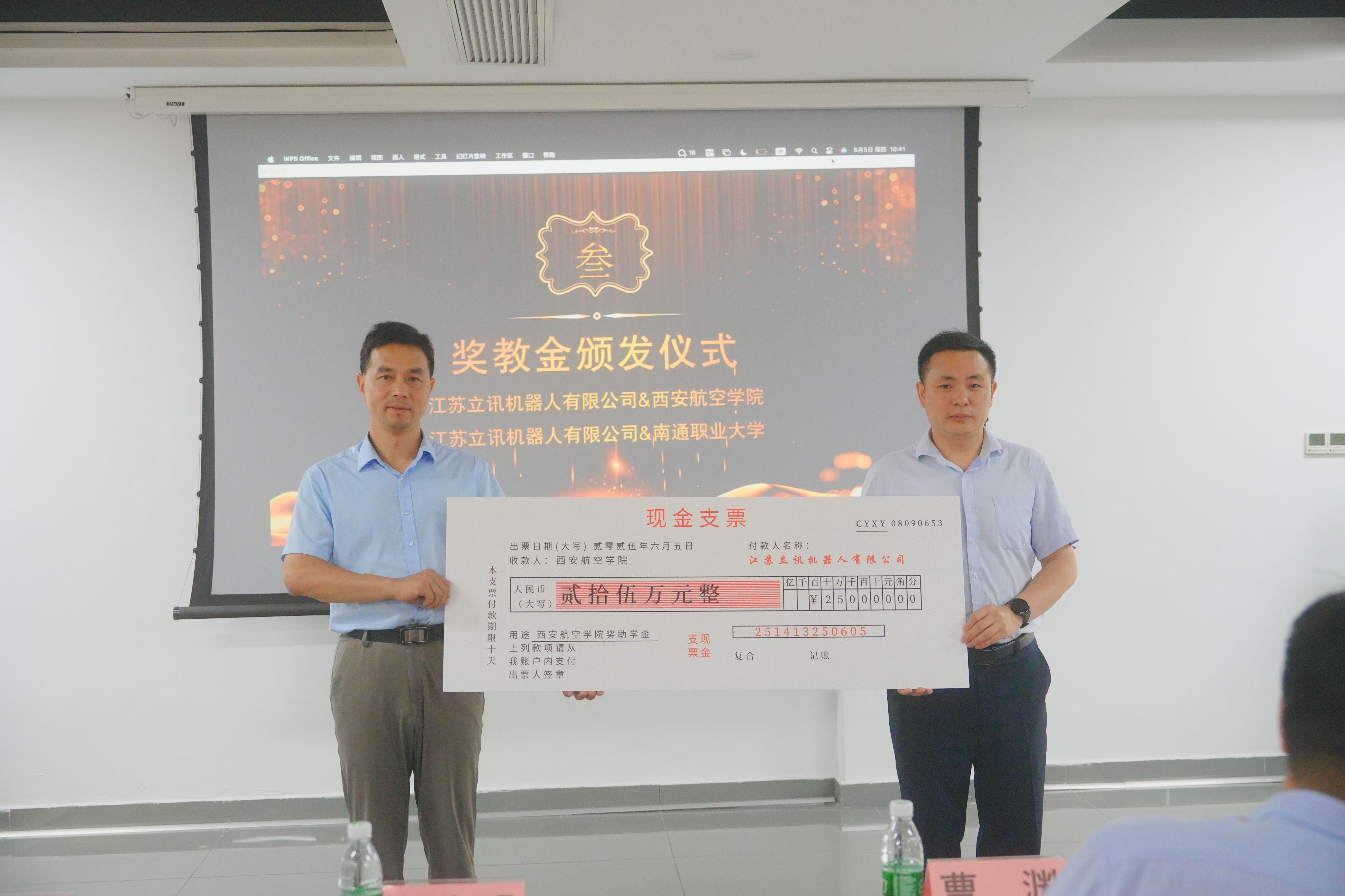 捐赠仪式上,尚奔经理与曹渊书记分别代表双方签署奖教学金捐赠协议。彭春明局长向公司颁发奖教学金,王永锋经理代表公司接受捐赠。该奖教学金的设立,既是对公司70周年华诞的献礼,也是校企双方深化产教融合、协同育人的重要举措。