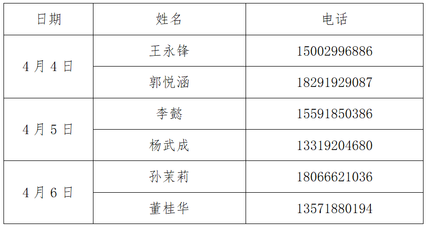 根据《关于公司2024年“清明节”放假安排的通知》文件精神,清明假期为2024年4月4日至2024年4月6日,放假期间,k8凯发值班安排如下: