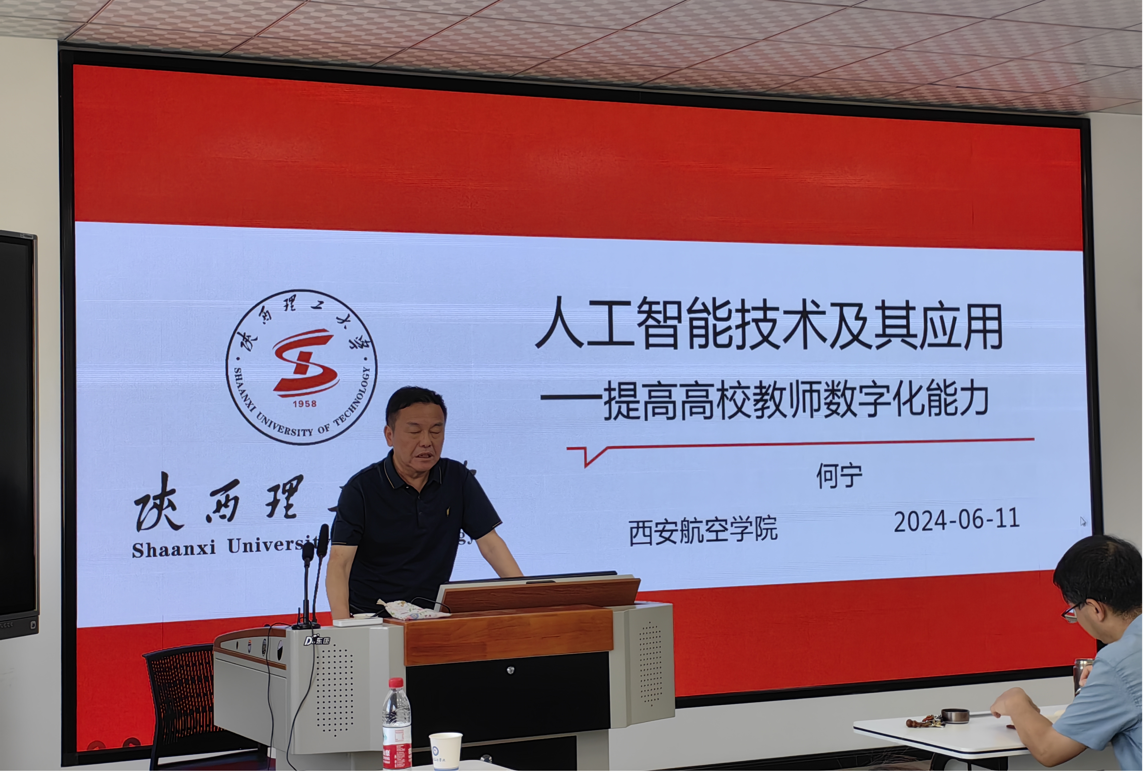 讲座中,何宁教授围绕正确认识人工智能、人工智能发展历程、人工智能技术原理、人工智能应用领域、重塑高等教育形态几个方面,重点讲述了如何利用人工智能技术提高高校教师数字化能力等内容。讲座结束后,部分教师就人工智能技术在公司相关专业中的应用及课程体系设置等具体问题进行了深入的探讨与现场交流。
