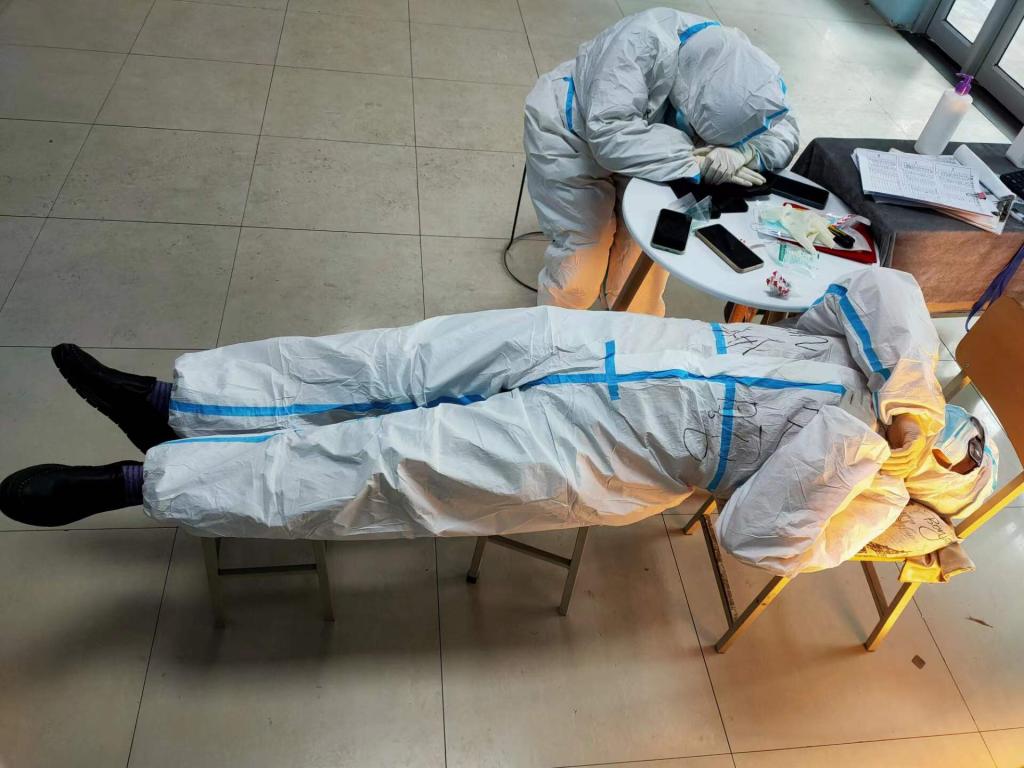 由于工作中接触确诊员工,周小勇书记、孙茉莉副书记、贾昭、谢肖等老师都作为B类接触者被集中隔离。几天的连续奋战,他们每天都只睡一两个小时,甚至有时彻夜未眠。他们的担当充分彰显着党员冲锋在前、无所畏惧的坚强品质。