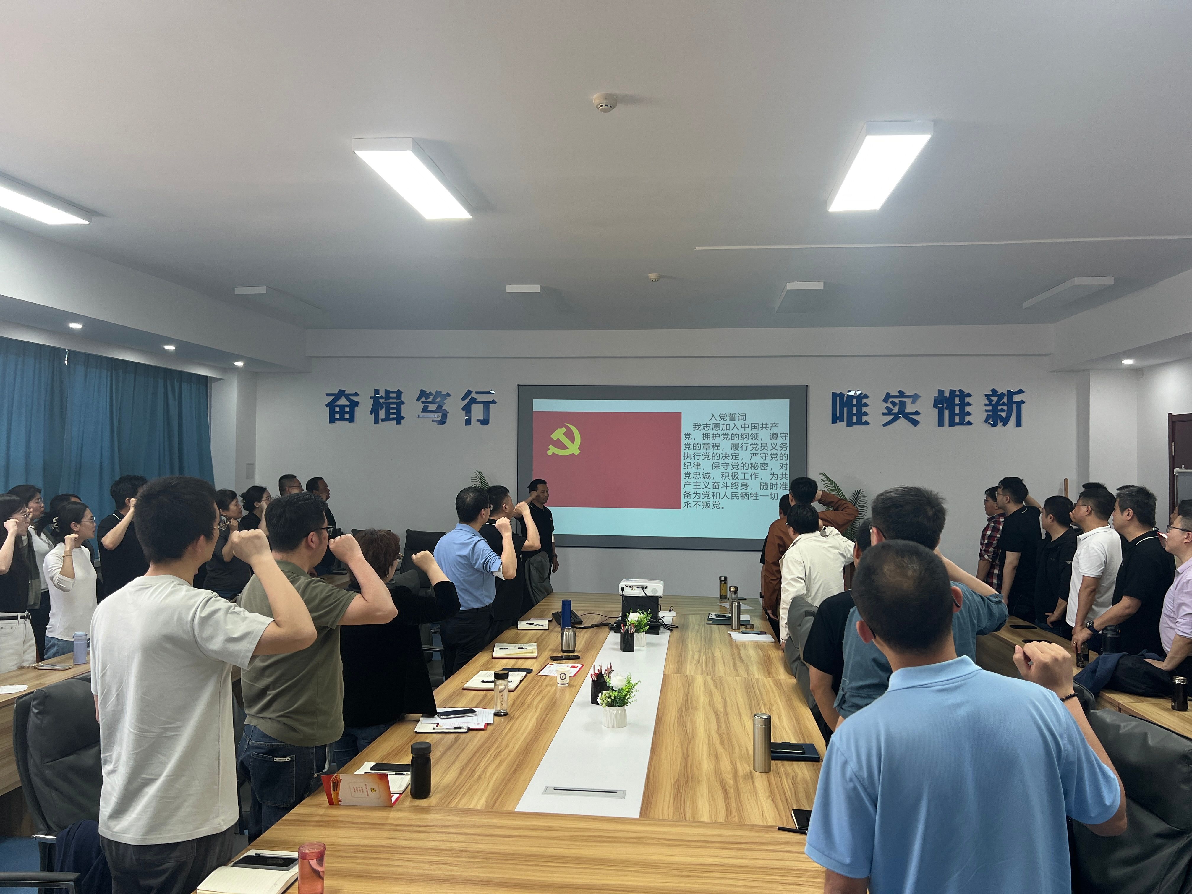 活动在庄严的宣誓中拉开帷幕。由王永锋经理领誓,全体党员面向党旗庄严举起右拳,铿锵有力的誓词声响彻会议室,彰显了党员对党的忠诚及为党的事业奋斗终生的决心。