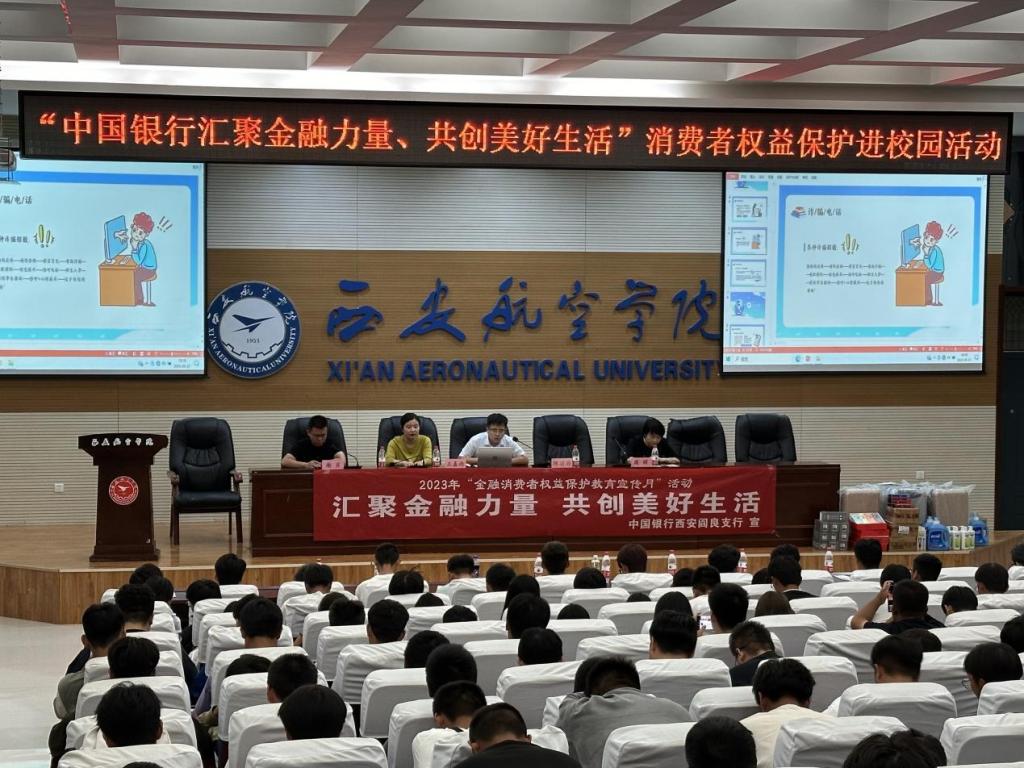 为保护消费者权益,切实提升公司员工反诈意识和技能,中国银行阎良支行于9月21日19点在第一阶梯教室开展“汇聚金融力量,共创美好生活”宣讲及反电诈宣传。中国银行阎良支行副行长陈滔滔、营业部主任周辉一行十人到公司开展宣讲活动。公司员工管理科科长王嘉雨老师以及团总支书记谢肖老师出席本次宣讲活动。