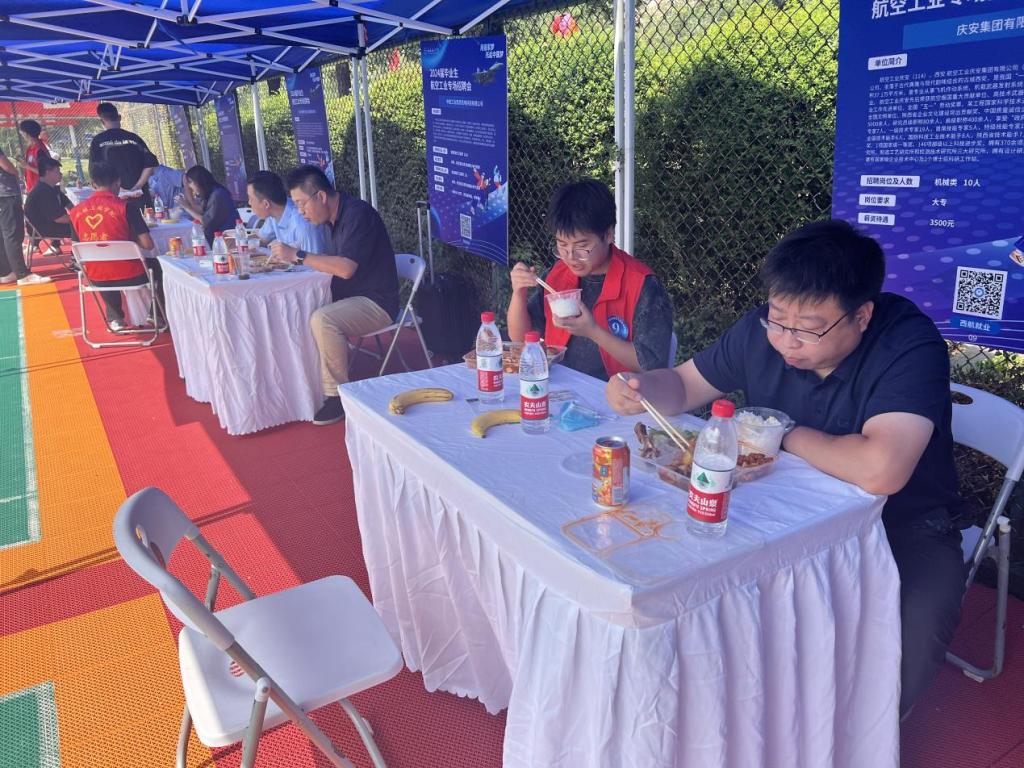 招聘会期间,志愿者们身穿红色马甲,忙碌的身影穿梭在各个角落,成为西航一道靓丽的风景线。他们吃苦耐劳、尽职尽责、热情服务,充分展现了“奉献,友爱,互助,进步”的志愿服务精神,得到了用人单位的高度赞扬,提升了k8凯发旗舰厅服务社会的良好形象。公司也贴心为企业及志愿者们提供爱心盒饭,包含水果及饮料、矿泉水,给志愿者们补充体力,稍作休整为接下来的工作加油蓄力。