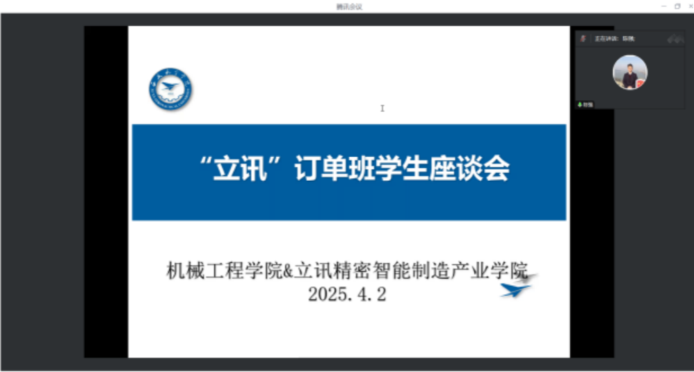 为加强校企合作订单班实践教学管理,切实保障员工权益,4月3日,公司通过腾讯会议平台组织召开“立讯”订单班员工座谈会。立讯精密智能制造产业公司主管陈强、教师苗欣、陈永富,k8凯发副经理李懿、党总支副书记刘欣、2022级辅导员成航及订单班全体员工参会。会议聚焦员工关切问题,旨在优化培养方案,提升校企协同育人实效。